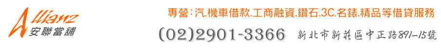 大台北安聯當舖給您最專業最親切的服務,沒有銀行繁瑣的手續,給您快速、簡單便利、低利息的典當流程,成為您去煩解憂的好幫手。